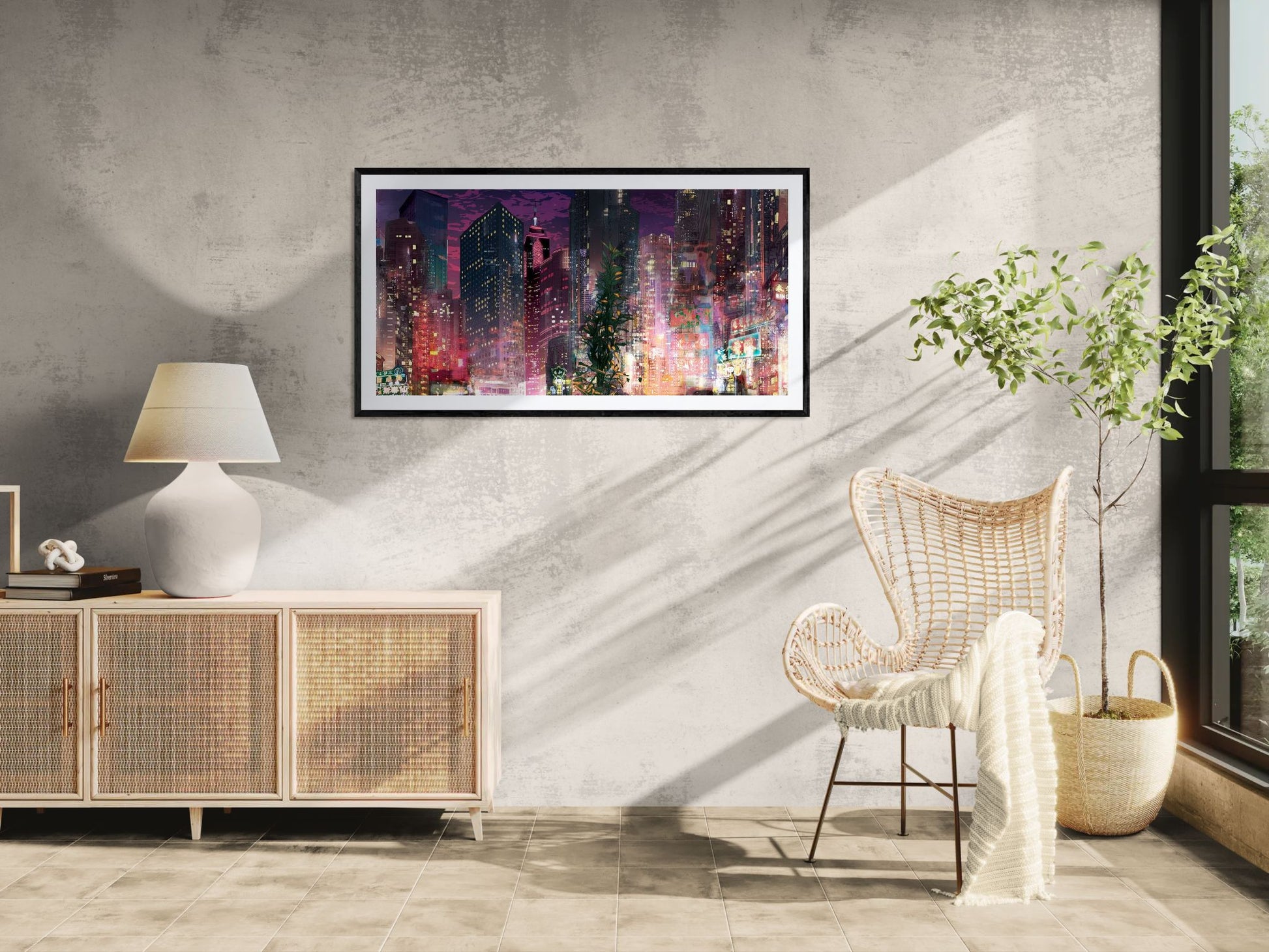 Artworks are packed individually and ship via SF (domestic) or UPS (international). Shipping rates are calculated based on the shipping address and artwork dimensions, weight, and value.