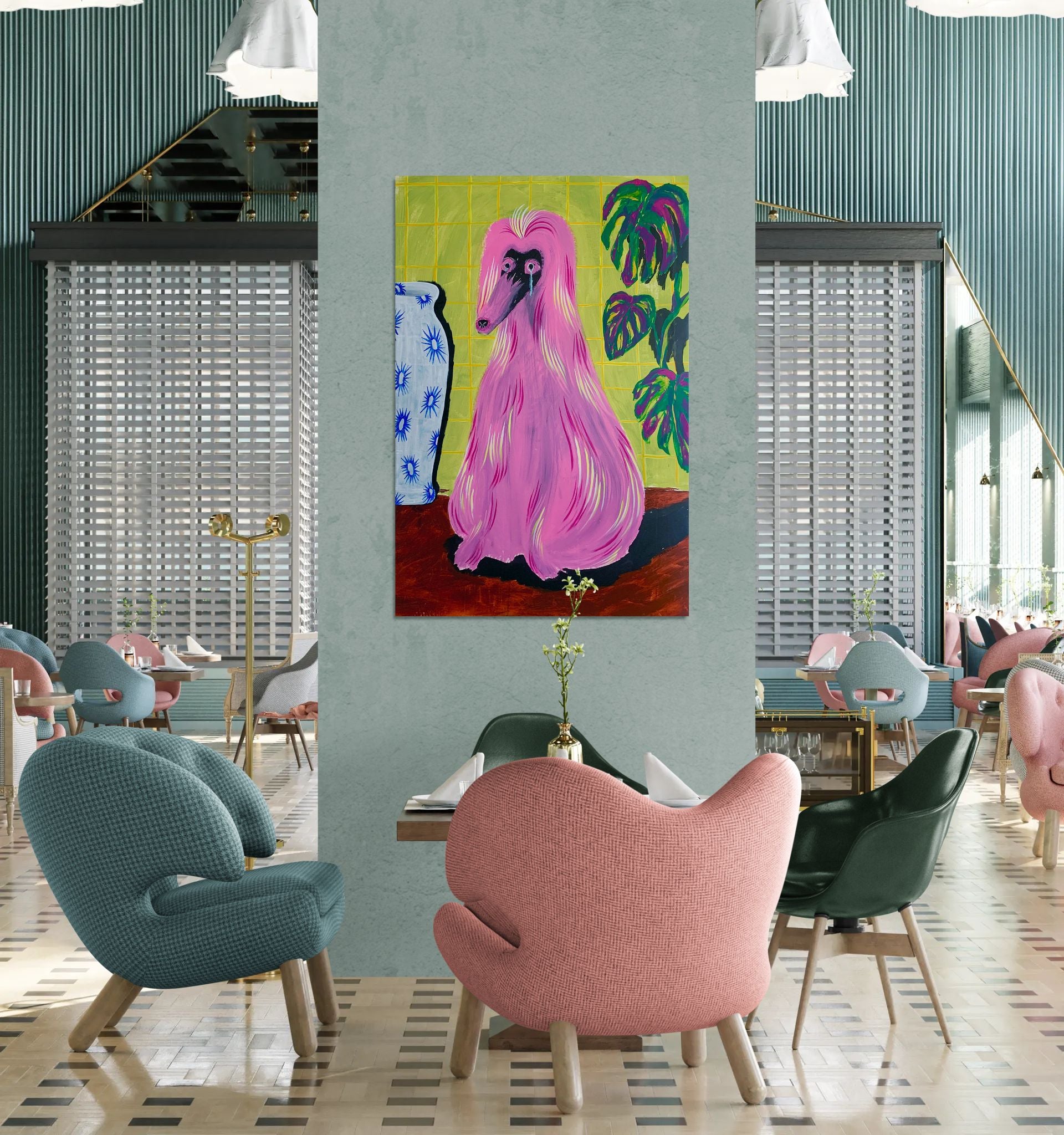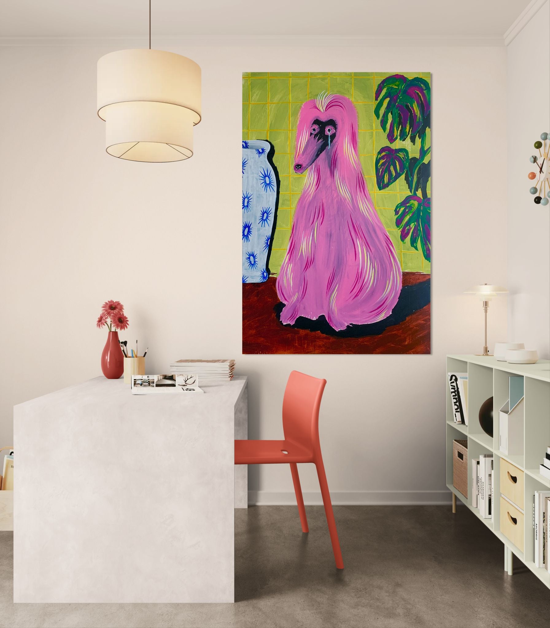Artworks are packed individually and ship via SF (domestic) or UPS (international). Shipping rates are calculated based on the shipping address and artwork dimensions, weight, and value.