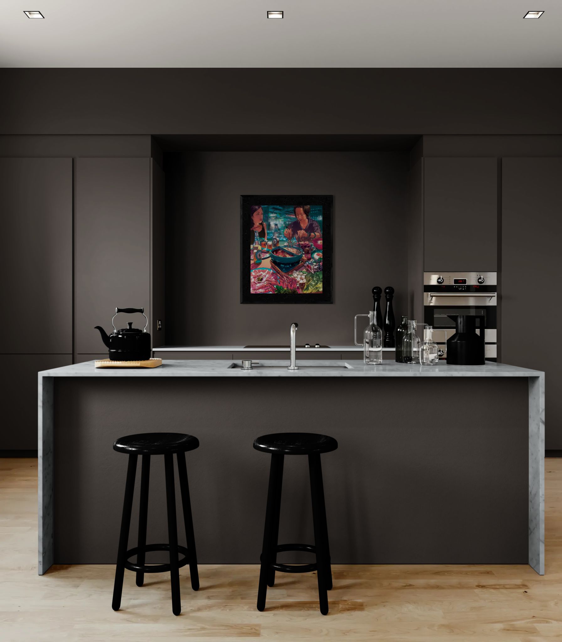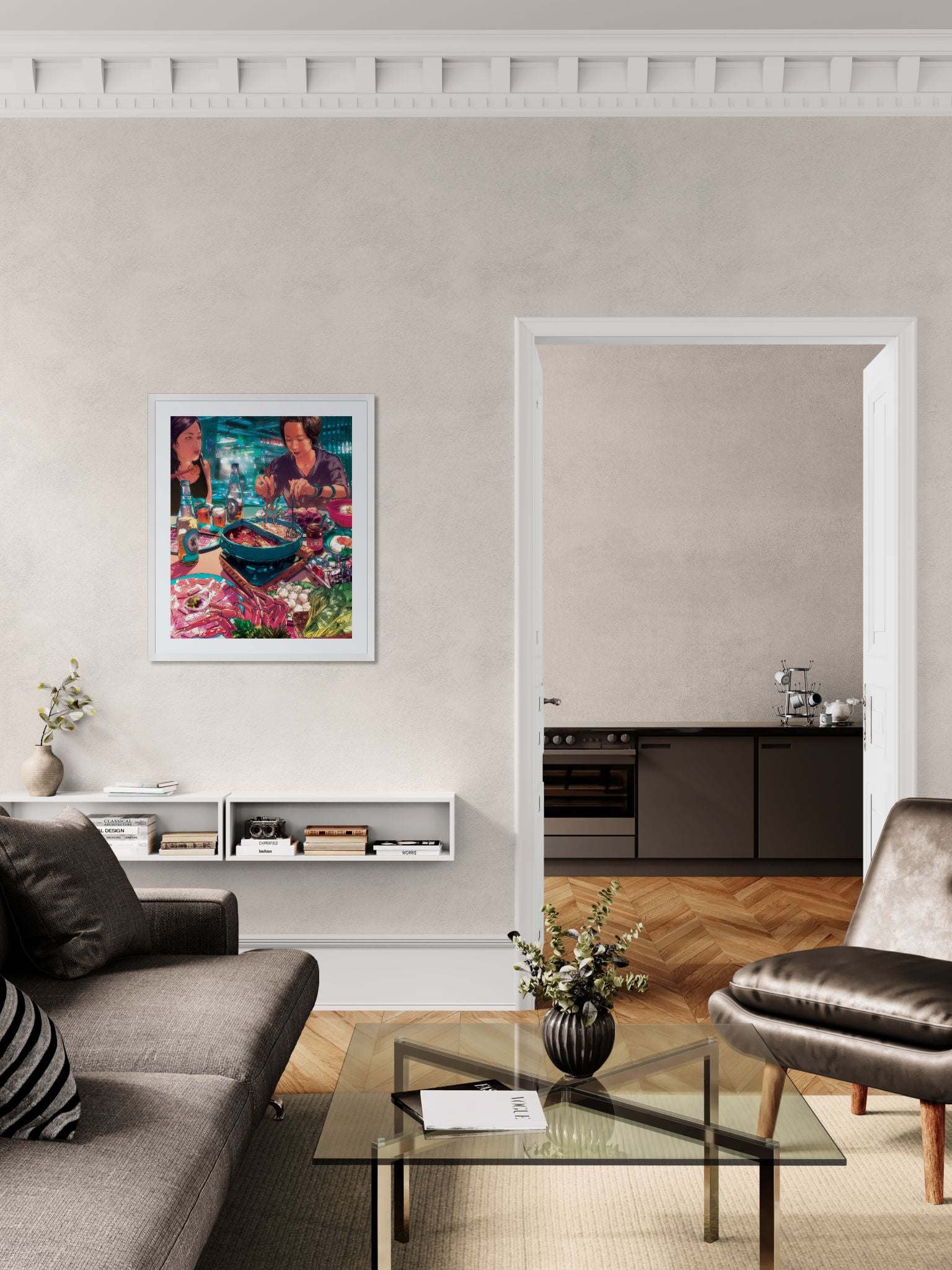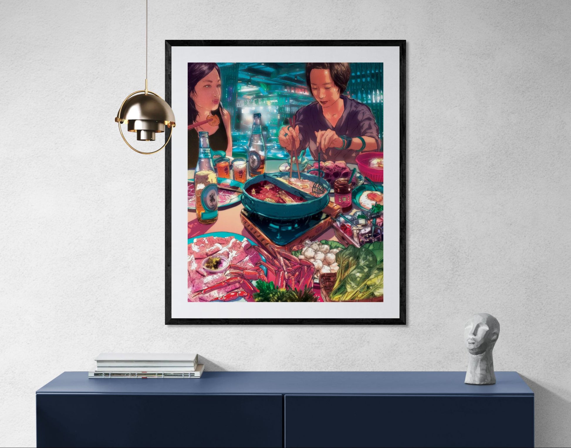 Artworks are packed individually and ship via SF (domestic) or UPS (international). Shipping rates are calculated based on the shipping address and artwork dimensions, weight, and value.