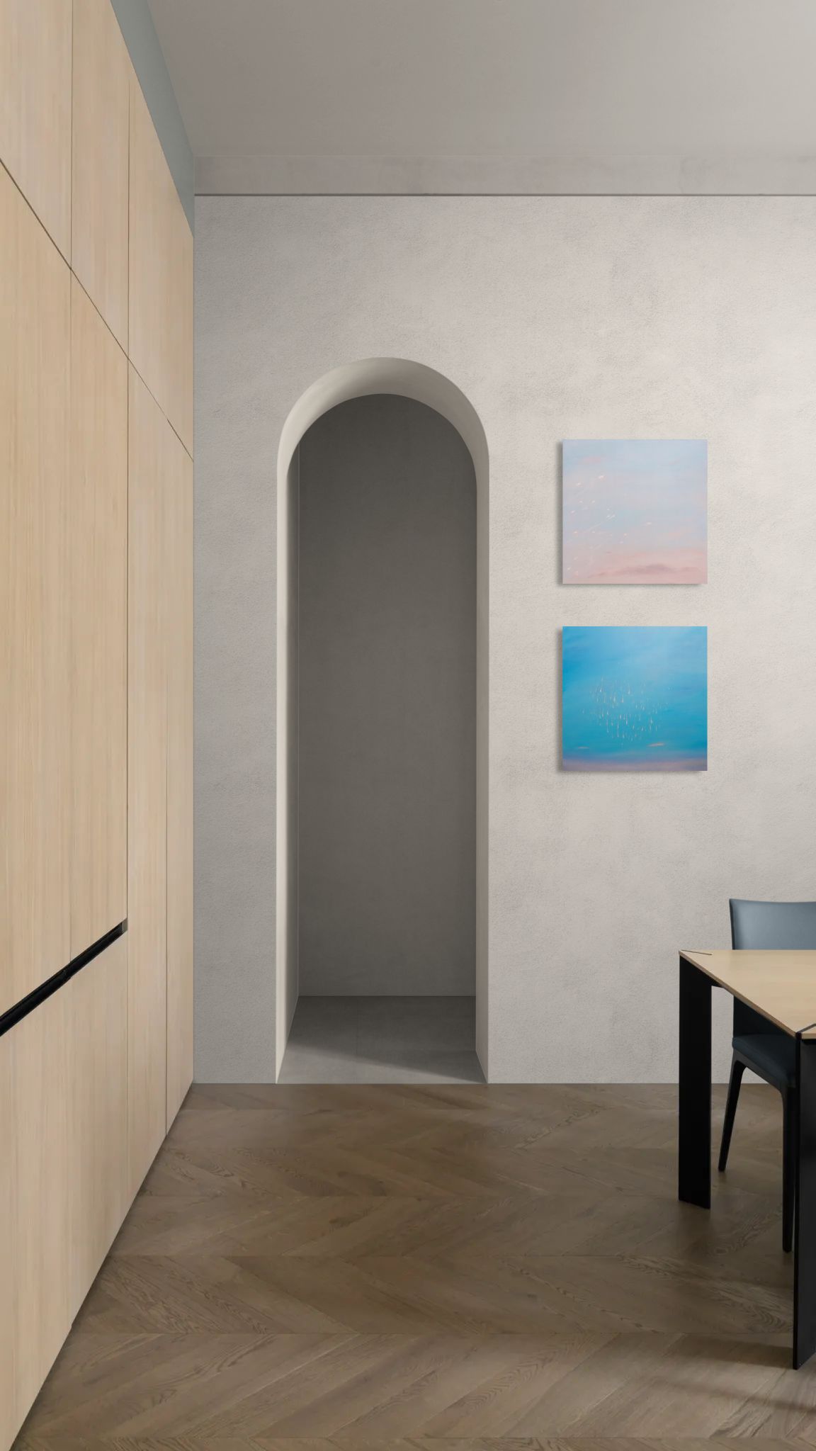 Artworks are packed individually and ship via SF (domestic) or UPS (international). Shipping rates are calculated based on the shipping address and artwork dimensions, weight, and value.