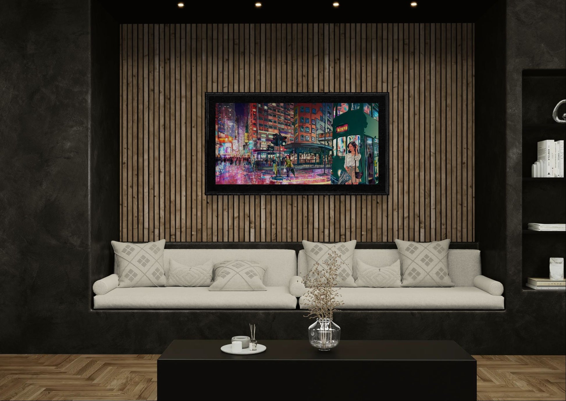 Artworks are packed individually and ship via SF (domestic) or UPS (international). Shipping rates are calculated based on the shipping address and artwork dimensions, weight, and value.