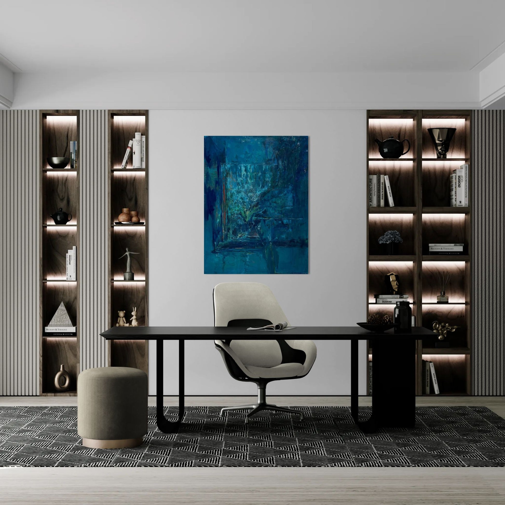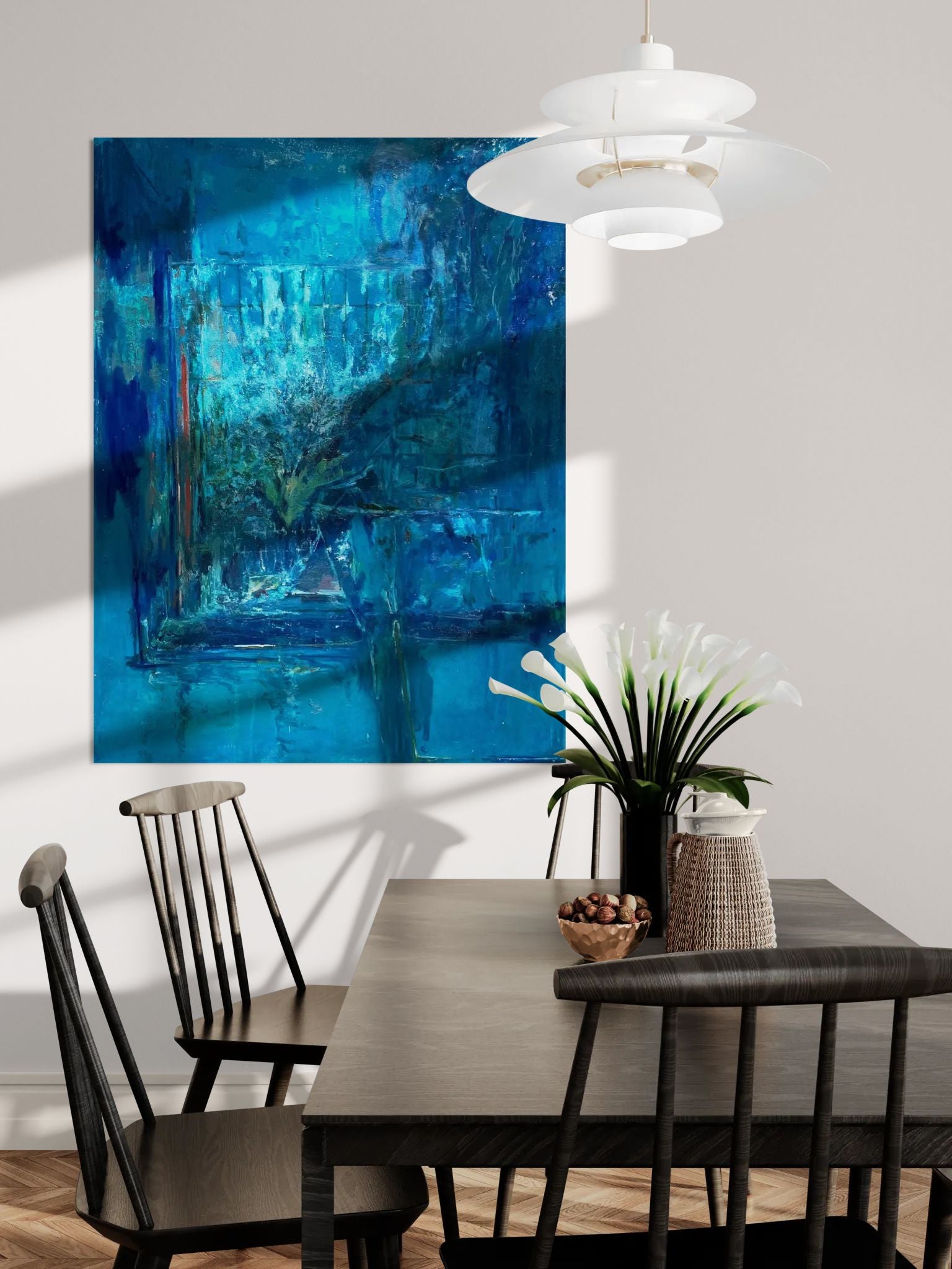Artworks are packed individually and ship via SF (domestic) or UPS (international). Shipping rates are calculated based on the shipping address and artwork dimensions, weight, and value.