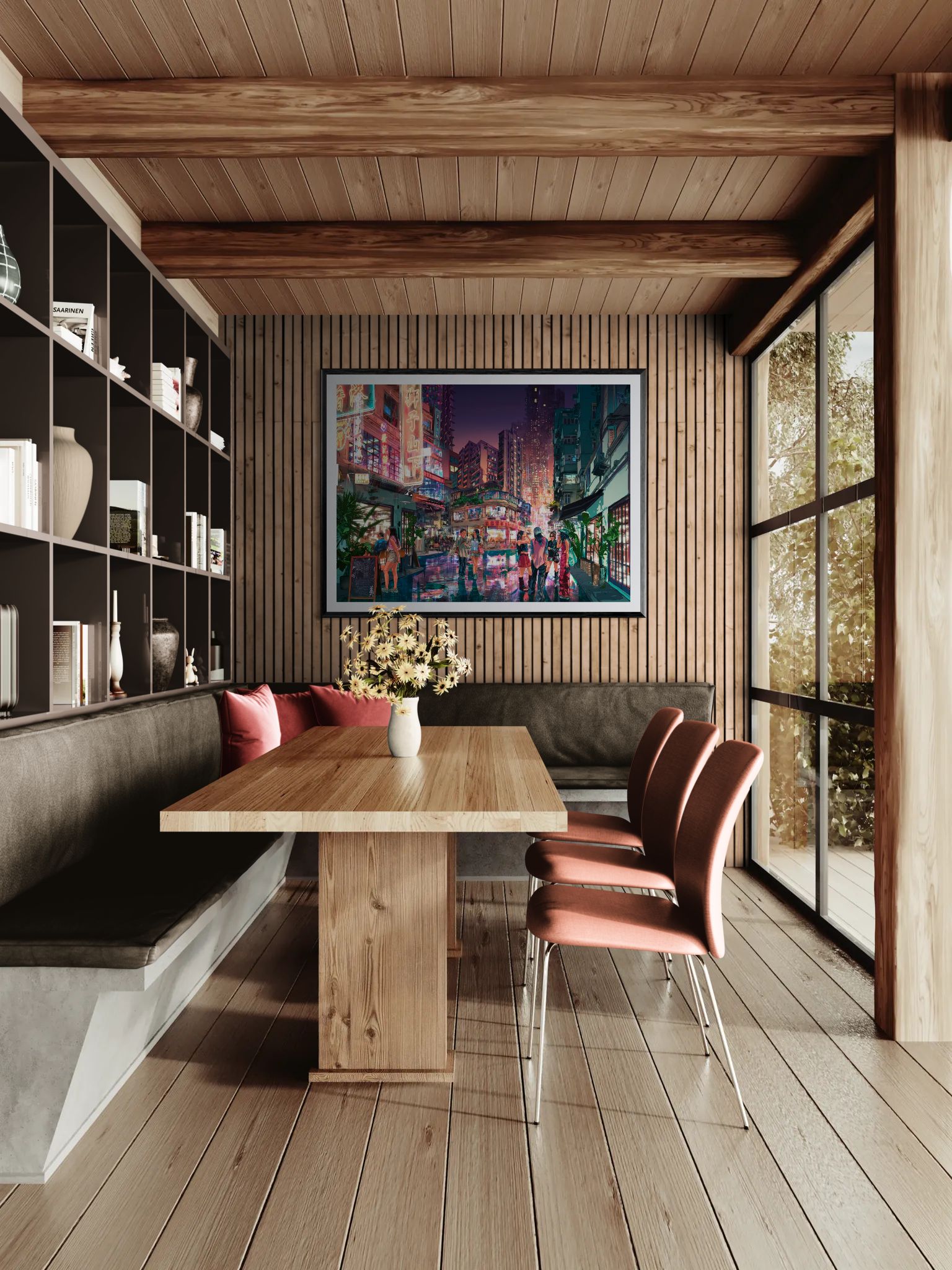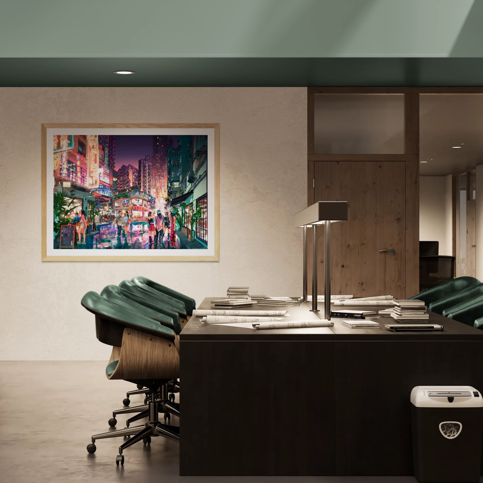 Artworks are packed individually and ship via SF (domestic) or UPS (international). Shipping rates are calculated based on the shipping address and artwork dimensions, weight, and value.